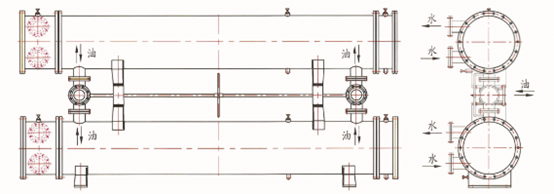 管殼式換熱器采用雙聯(lián)結(jié)構(gòu),由兩只相同面積的冷油器和三通閥裝置構(gòu)成,一只工作,一只備用,每個(gè)冷卻器能承擔(dān)整個(gè)系統(tǒng)的冷卻負(fù)荷,管板一頭固定,一頭浮動、可拆卸的管束和水室箱蓋,便于運(yùn)行過程中清洗、檢查和維修。管殼式換熱器材質(zhì),根據(jù)使用場所、水系統(tǒng)條件可有多種選擇。